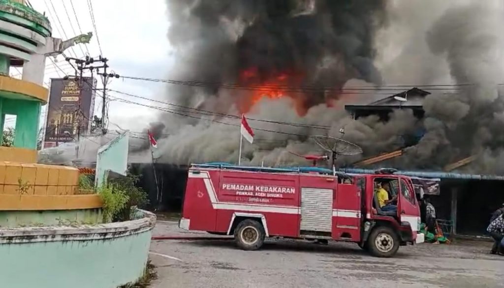 ACEH SINGKIL – Kebakaran melanda rumah berderet di Simpang Tugu Lipat Kajang Atas, Simpang Kanan, Aceh Singkil pada Jumat, 23 Agustus 2024 sekira pukul 08.30 Wib.