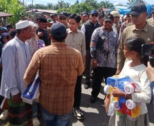 Gibran turut menyaksikan penyerahan bantuan satu truk logistik dari BSI kepada Pemerintah Daerah Aceh Singkil.